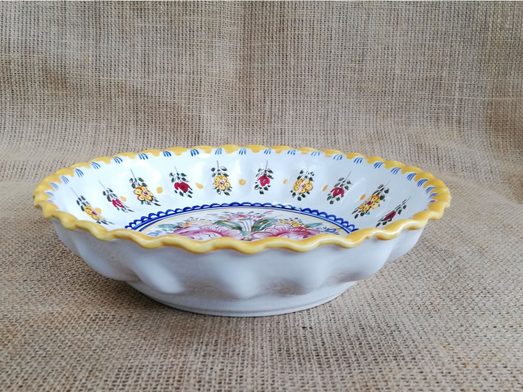 Sluníčková letní miska, která láká dát si něco dobrého jen tak, třeba meruňkové kynuté knedlíky. Když zavřete oči, rázem se ocitnete u babičky na chalupě a kolem vás je plno dobrot v krásných malovaných miskách jako je tato. Je malovaná tradičním motivem červené růže. Prolamovaný okraj je zdobený žlutou konturou. Můžete použít také jen jako dekoraci do vitríny nebo na polici. Hezky se bude vyjímat i na bílé zdi, ale určitě by byla velká škoda misku nepoužívat.
