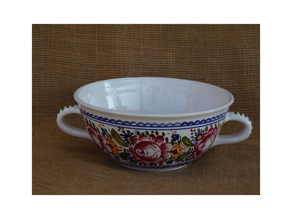 Tradiční slovácká dekorační keramika, zdobena dle tradičních vzorů typických pro Moravu. Rádi vaříte pro svou rodinu, či přátele? Pokud ano, určitě se Vám bude zamlouvat tahle ručně malovaná miska na polévku. Překvapte své hosty svými skvělými kulinářskými dovednostmi, ale také svým stylovým kuchyňským vybavením. Miska je zdobena tradičními slováckými vzory. Keramiku lze mýt v myčce. Tyto famózní kousky můžete objednat na našem e-shopu.