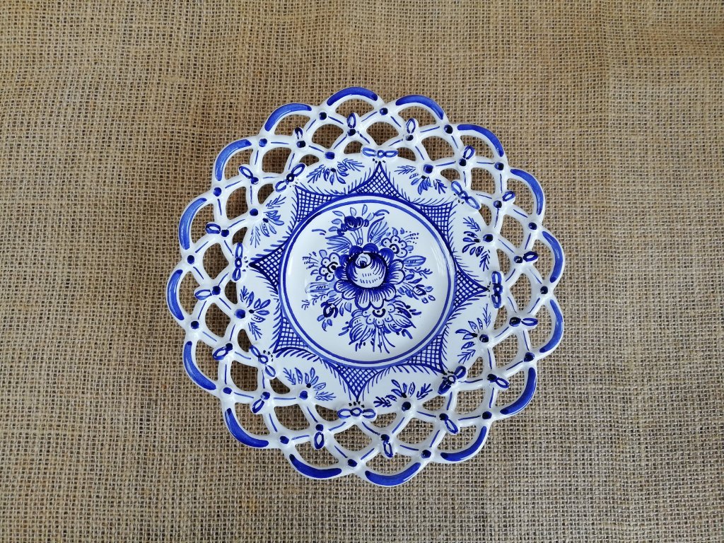 Větší pavučinkový talíř, který se nemůže dočkat, až mu pořádně naložíte. Je malovaný slováckou modrou růží a zdobený třemi krajkami. Můžete jej použít pro servírování nebo jen jako dekoraci do vitríny, police či příborníku. Hezky vynikne i na bílé zdi, je neobyčejný a vytvoří vám doma příjemnou domácí atmosféru slovácké chalupy.