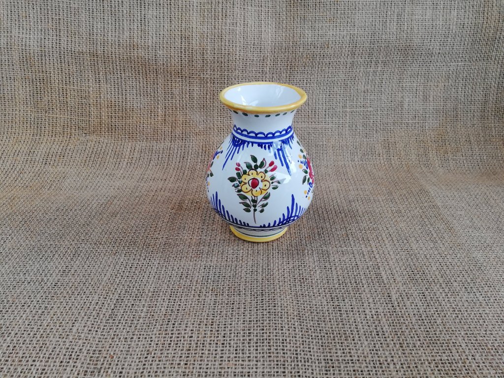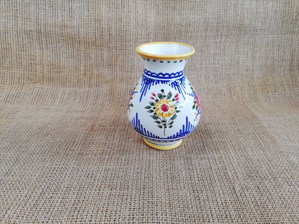 Menší vázička je malovaná motivem červené růže a na vrcholu hrdla září žlutá kontura. Není nic hezčího, než kytička fialek nebo konvalinek v této veselé vázičce, které svou pronikavou vůní osvěží váš domov. Objevte další úžasné výrobky ve stejném motivu a vytvořit si tak unikátní soupravu zcela podle sebe. Kombinujte a objevujte další možnosti tupeské keramiky!