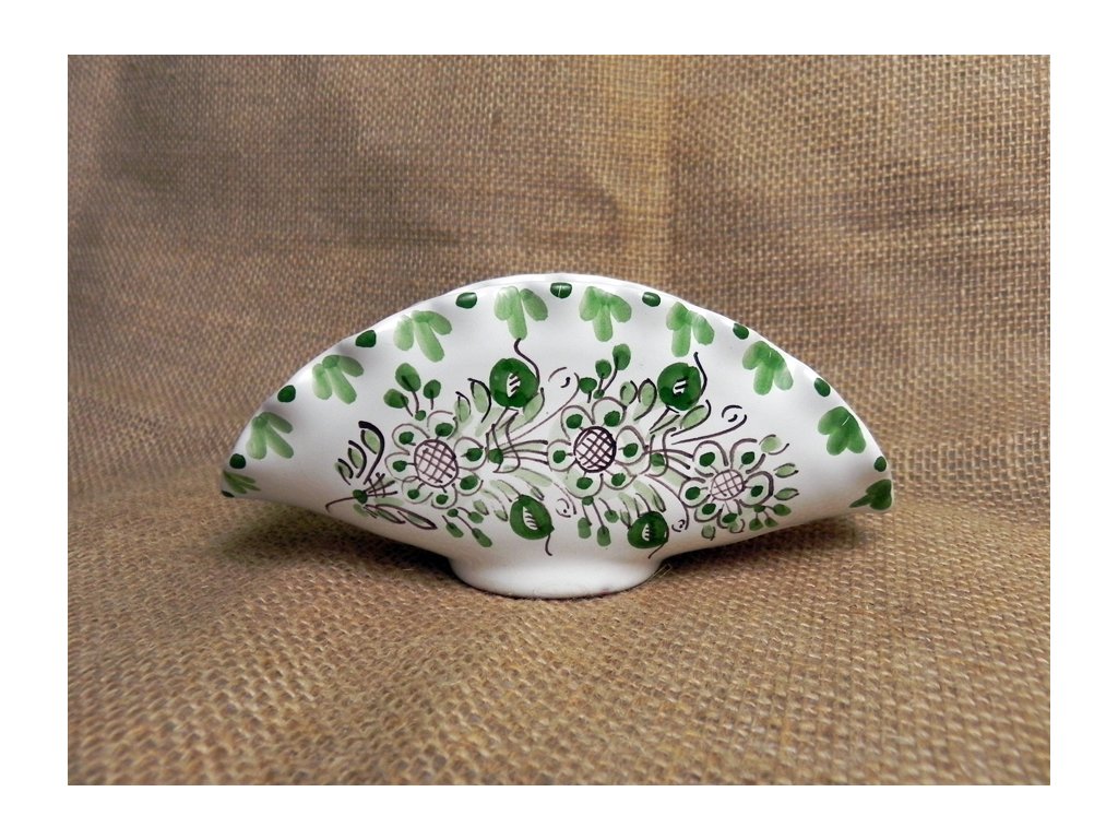 Nízký stojánek na ubrousky jemně malovaný zelenou barvou s hnědou konturou a ozdobený vlnkou po okraji. Stojan je zdoben tradičními slováckými vzory. Je dokonalým doplňkem do Vaší kuchyně. No nemyslíte že se bude skvěle vyjímat na Vaši polici či stolu? Ozdobte svůj domov a objednejte právě na našem e-shopu tento originální kousek právě u nás. Keramiku lze mýt v myčce.